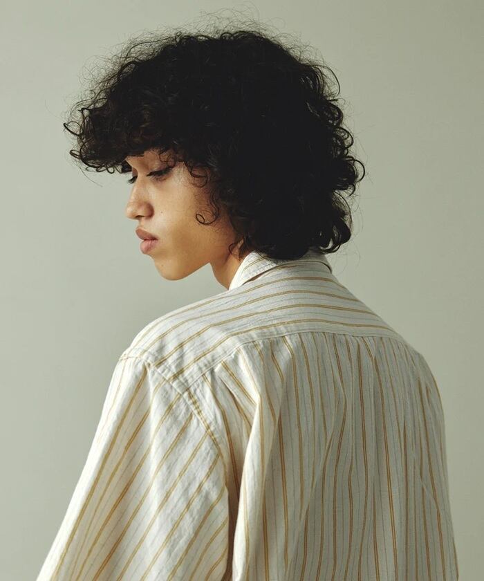 オーガニック系のサスティナブル素材で織られたストライプ生地を採用。
