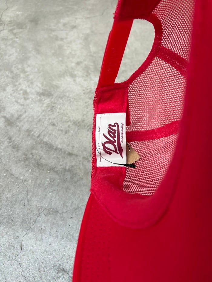 ポリエステル、ナイロンメッシュを組み合わせた大定番のトラッカーメッシュキャップを採用し額に当たる滑りにはパイル素材を施して汗止めとしての役割を付与しています。