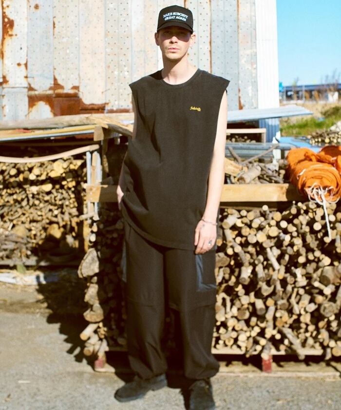 ざっくりと袖を切り落とされたデザインとなっており、普段のスタイリングはもちろん、フェスなど野外イベントの増えるシーズンには、活躍の場面の多い一着。