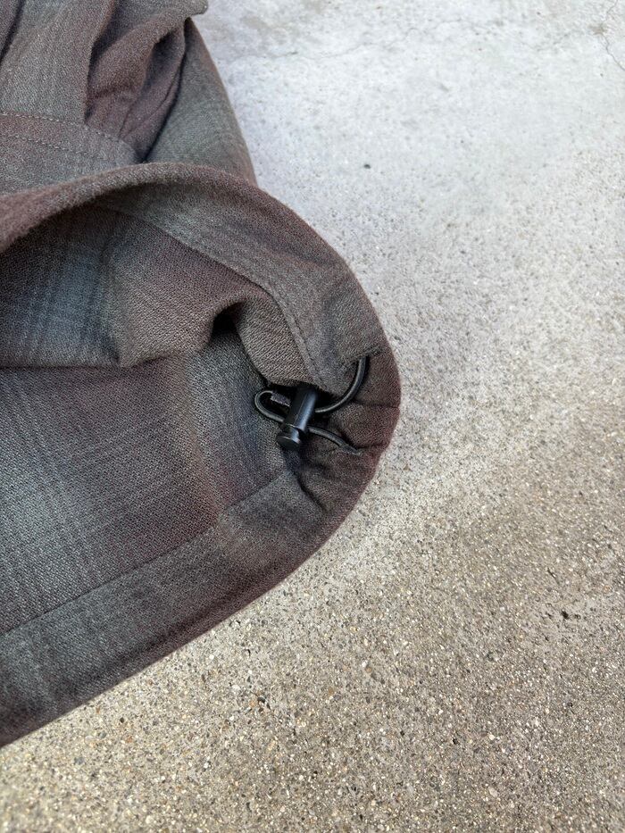 裾部分へは、シルエットを調整出来る様にコードを設けており、気分に合わせて着用感を調整出来る良いシャツに仕上がりました。