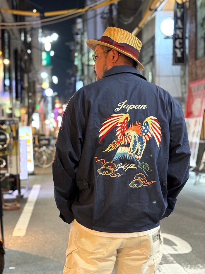 程良い肉感のリップストップコットン、大ぶりなフラップ付きマチポケット、比翼付きのフロントボタンを採用し、裾はドローコード付きにしたシャツジャケットタイプにもなる秋らしい、ミリタリージャケットを作製し、フロント両胸、袖、背面、衿と贅沢にスーベニア刺繍を施した一枚。
