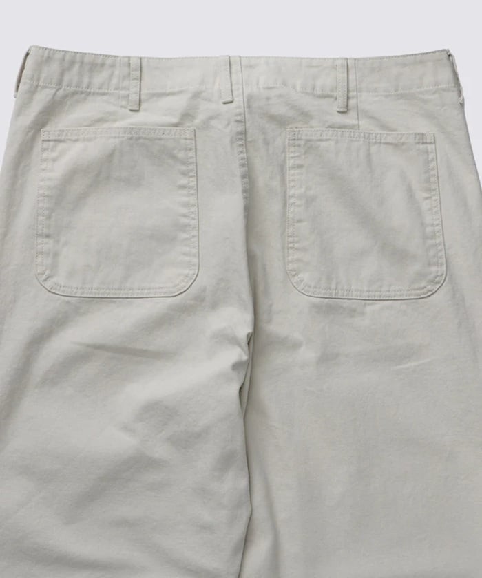 フロントはジップフライ仕様、深めのLポケットやパッチポケットなど、ミリタリー由来の機能的なディテールも魅力です。