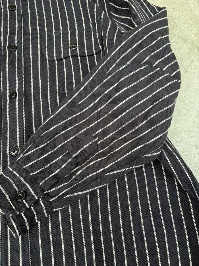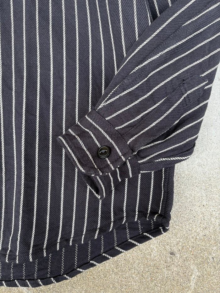 角の取れたフラップポケット、両袖のエルボーパッチ、猫目ボタンと言ったヴィンテージのディティールを施しやや身幅に余裕を持たせ、着丈を調整したボックスシルェットにて構築。