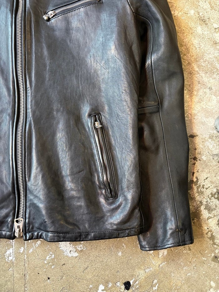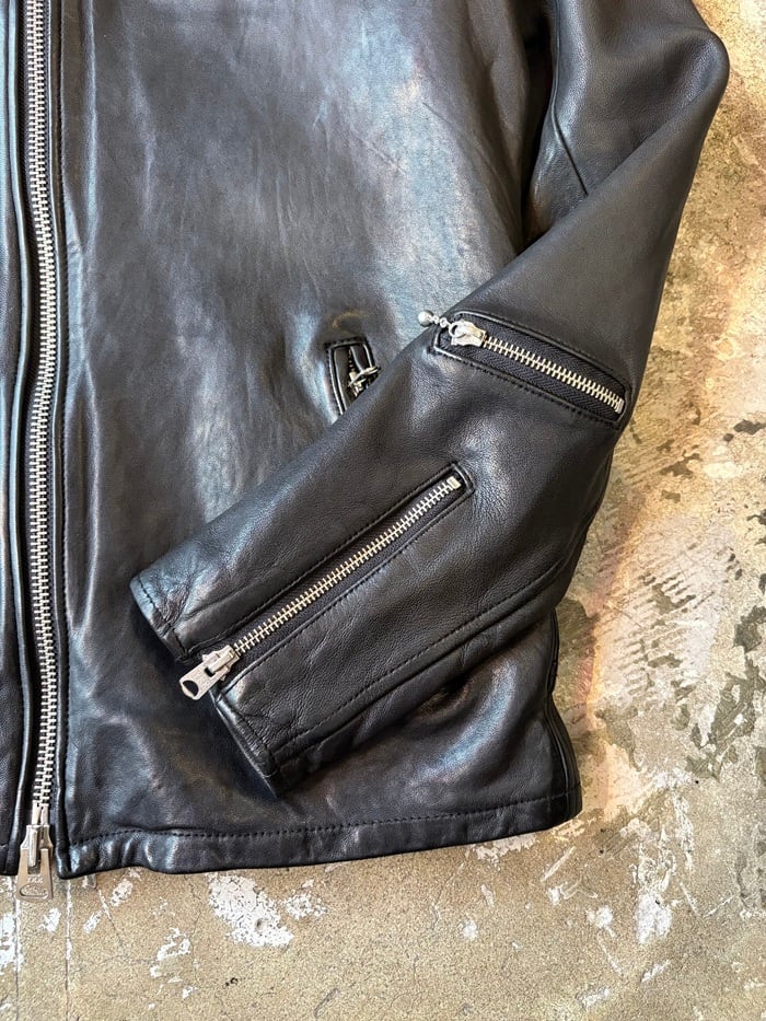 着用を繰り返し、着しわを楽しみながら革の持つ表情の変化も年月と共にしっかりと味わう事の出来る上質なレザーを採用されております。