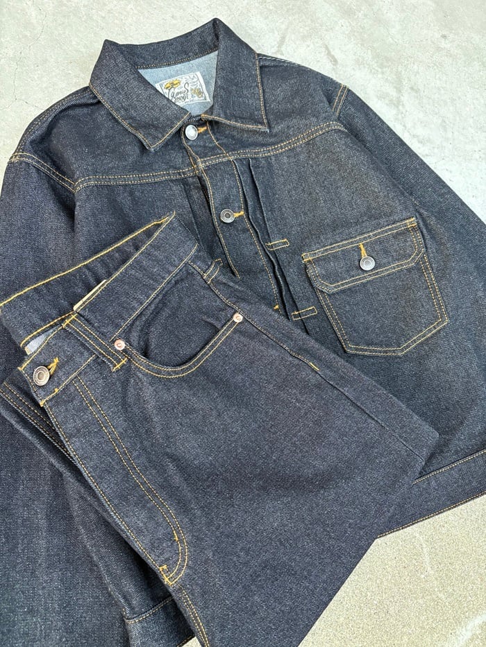 着丈を短くとり、身幅をワイドにと近年のスタイリングトレンドを取り入れてみたデニムジャケット。