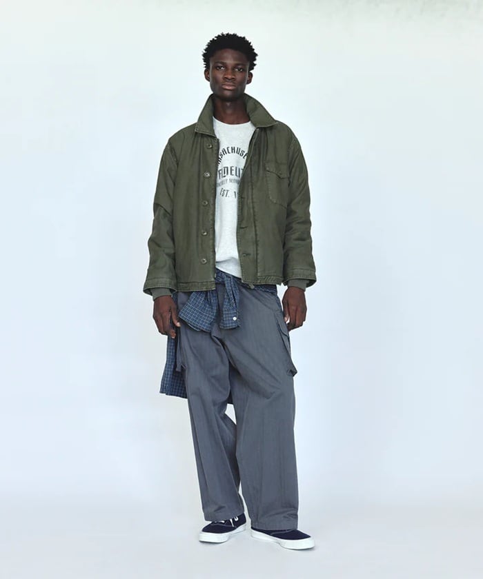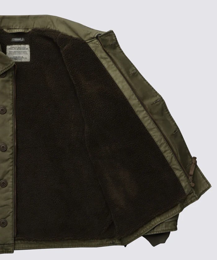 1950年代に米海軍(U.S.NAVY)で採用されていた「A-2デッキジャケット」をベースに、FIDELITYが現代的に再構築したミリタリーライトアウターです。