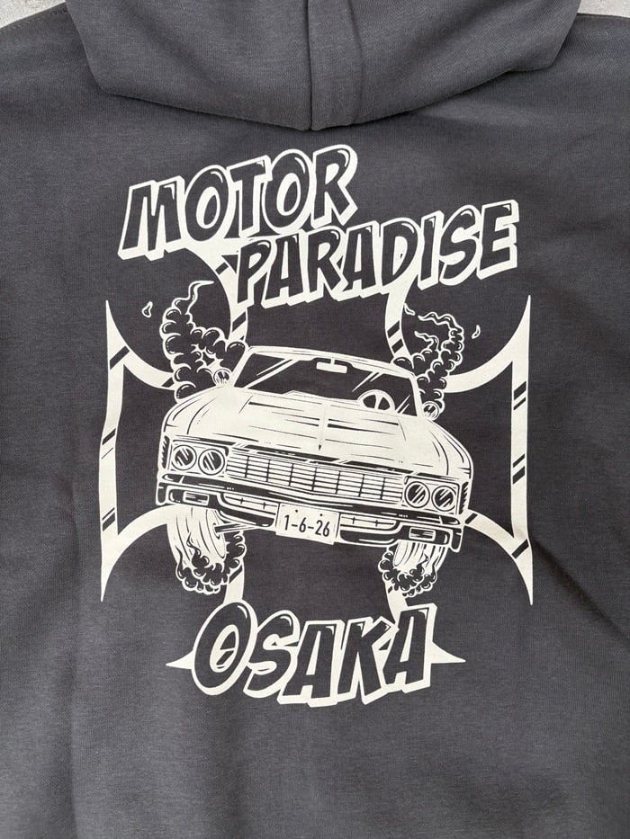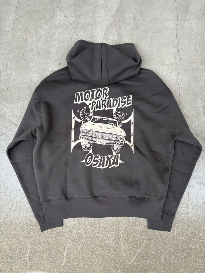GENIUS CRAftのオリジナルグラフィック " MOTOR PARADISE "をバックプリントへ。