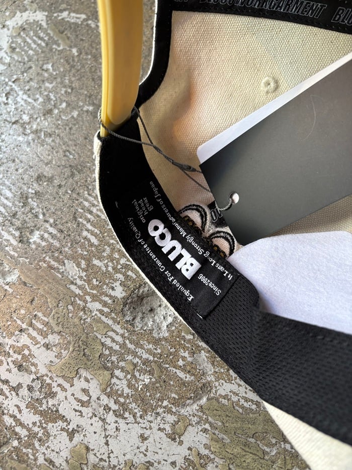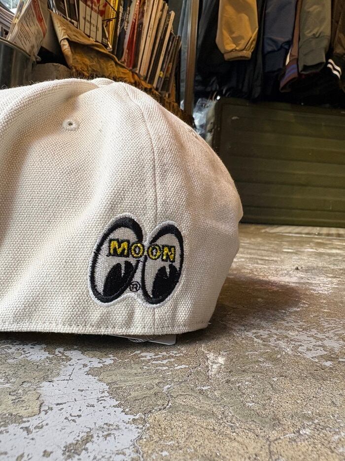 キャップ左サイドにムーンアイズの刺繍、右サイドへは、BLUCOのロゴが刺繍された豪華なトリプルコラボレーションキャップとなっております。