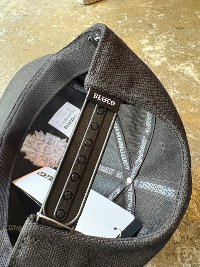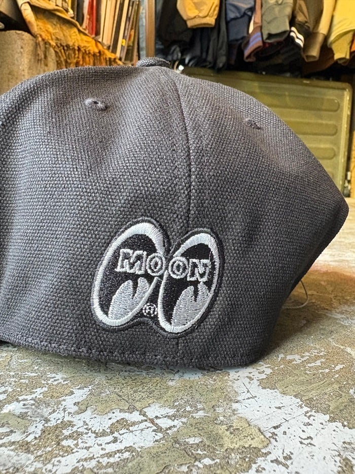 キャップ左サイドにムーンアイズの刺繍、右サイドへは、BLUCOのロゴが刺繍された豪華なトリプルコラボレーションキャップとなっております。