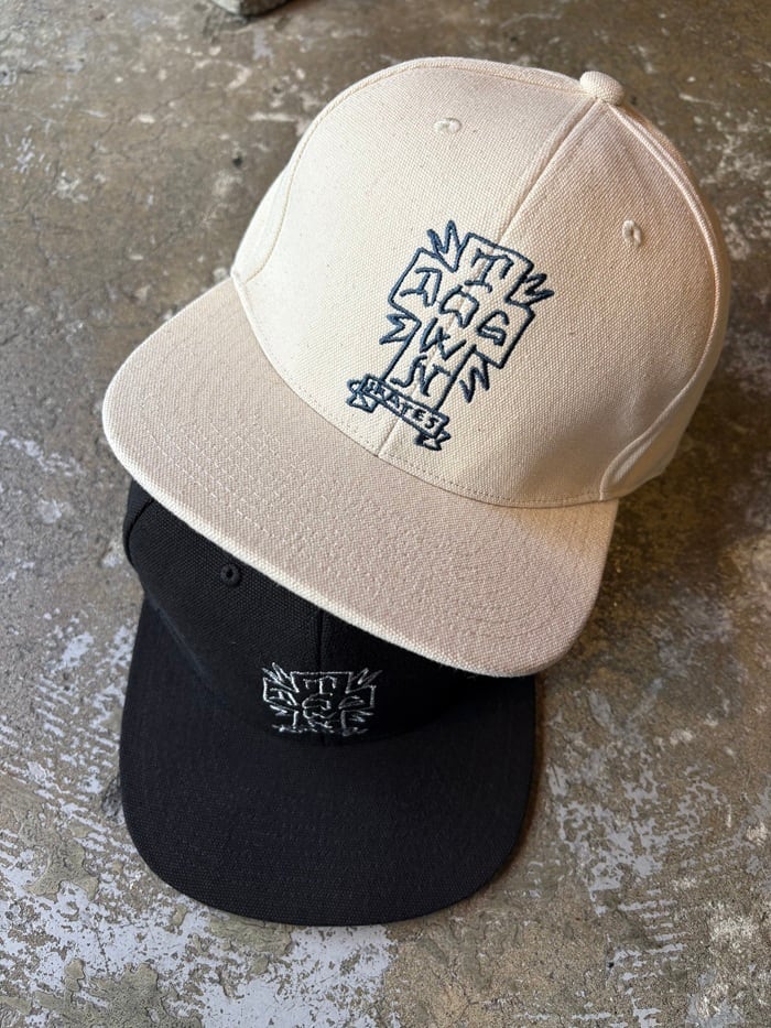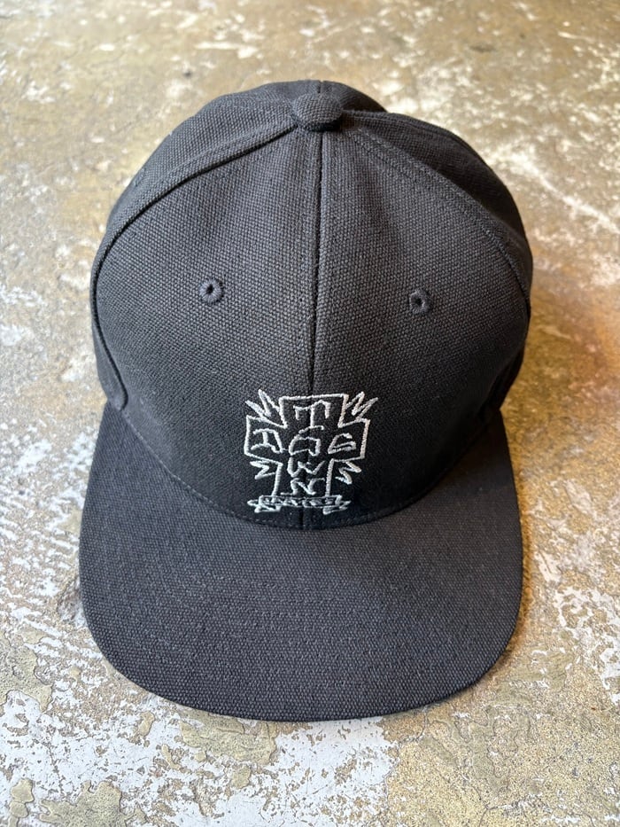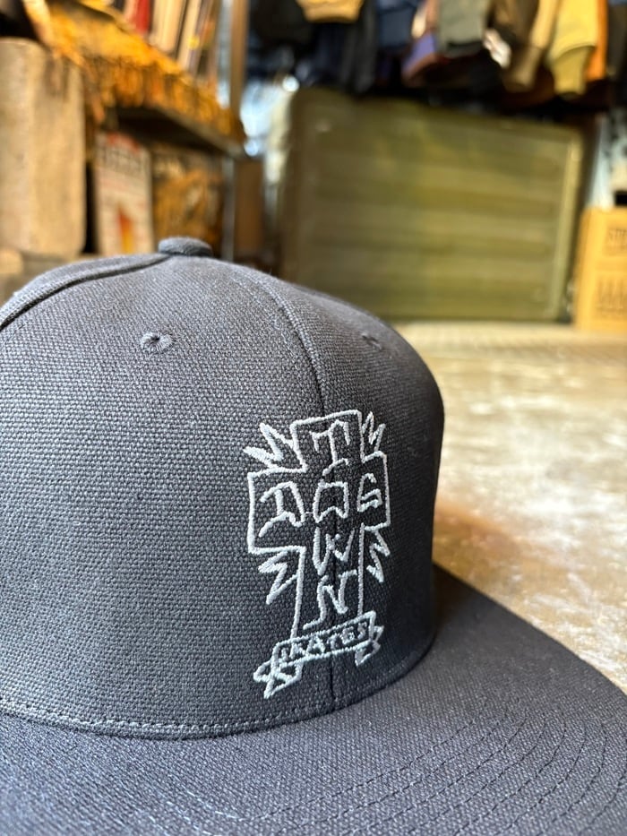 BLUCOオリジナルキャップにDOG TOWNのマークゴンザレスデザインのクロスロゴを刺繍。