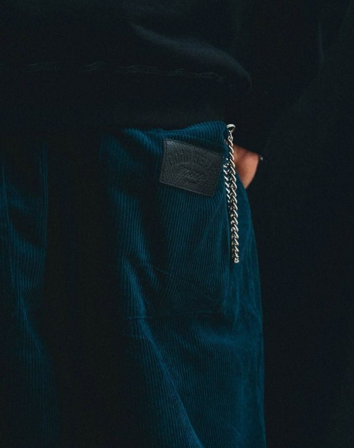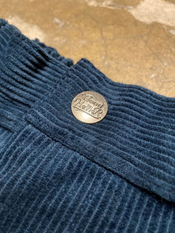 存在感のある太畝コーデュロイ素材を使用した、GOOD HELLER オリジナルワイドパンツ。