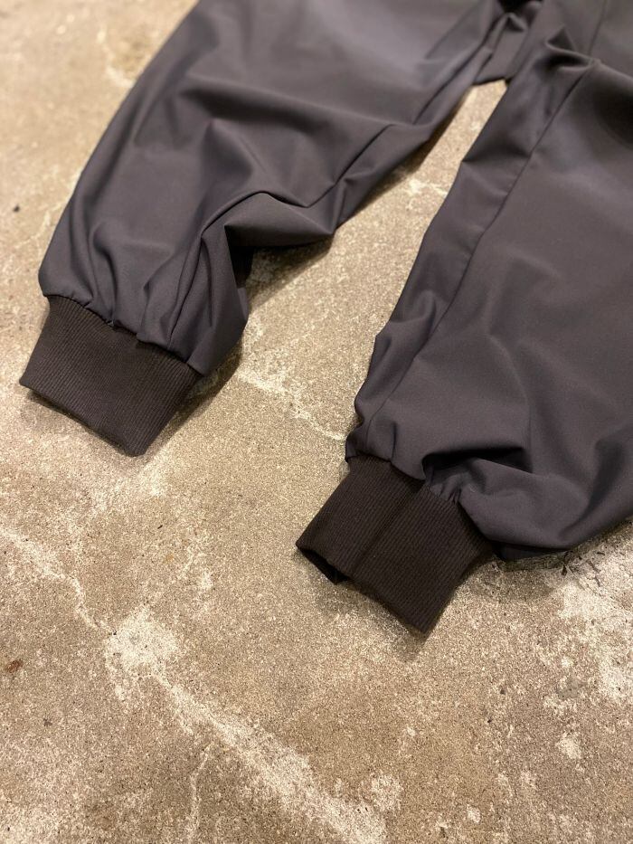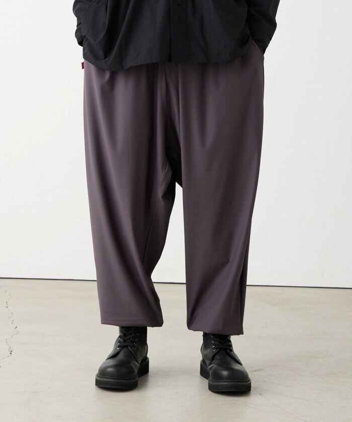 ペットボトルを主原料に循環型のリサイクルポリエステル糸「ECO BLUE®︎」を使用したハイテンションニット生地を採用したワイドパンツ。