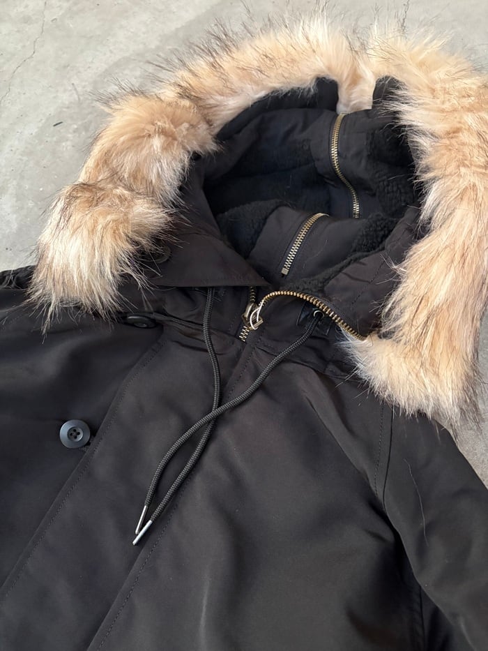 フード部分をジップにて開閉出来るユニークなディティールは、もちろん非常に耐久性に優れたタフなアウトシェル素材を使用するなど、拘りの詰まった一着となっております。