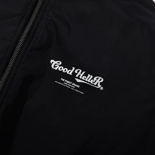 大ぶりなぱちポケット、リバーシブルの裏側は滑りが良く着心地を重視したナイロン地を使用し、背面にはメインロゴをプリント、フロント左胸にも同じくアクセントでプリント、スラッシュポケットにはジップ付きに。