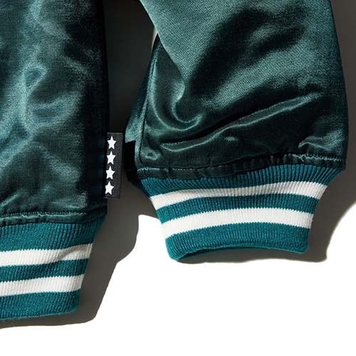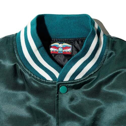 スカジャンなどで見受けられる コットンとレーヨンの混合サテン地を表に使用することで雰囲気ある一枚に。