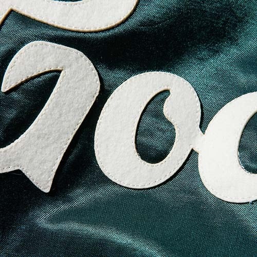 裏地には中綿入りのナイロンキルティング仕様となっており、フロントにはフェルトワッペンにてブランドロゴが付きインパクトあるスタジアムジャケットとなります。