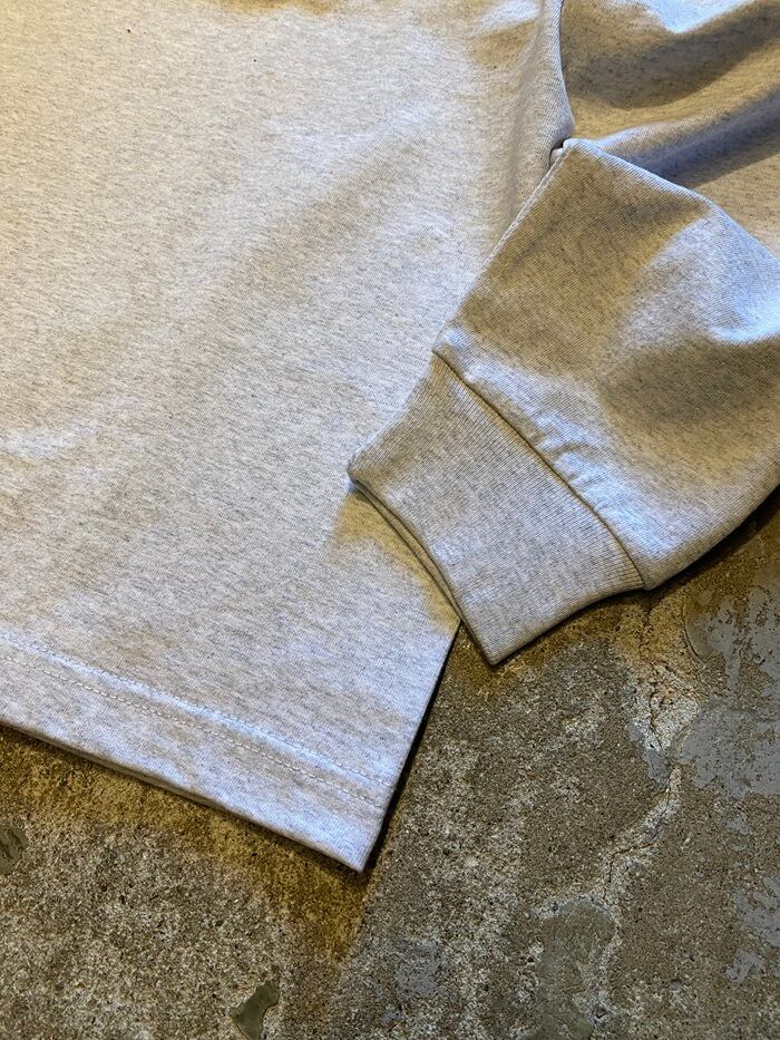 素材には7ozの空紡糸によるコットン天竺を採用し、USコットンの様などっしりとした肉厚さとドライな着心地を両立、長年の着用と共にエイジングも楽しめる様選定しています。