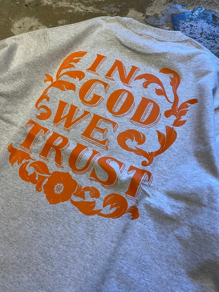 ドル紙幣、貨幣に印字されている文言に、唐草、ホピの花を組み合わせたグラフィックをバックへ、フロントへはハードワーカー達への祈りを込めたデザインを施しています。