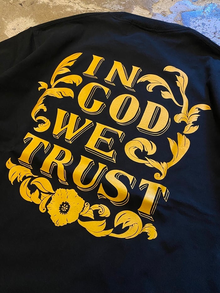 ドル紙幣、貨幣に印字されている文言に、唐草、ホピの花を組み合わせたグラフィックをバックへ、フロントへはハードワーカー達への祈りを込めたデザインを施しています。