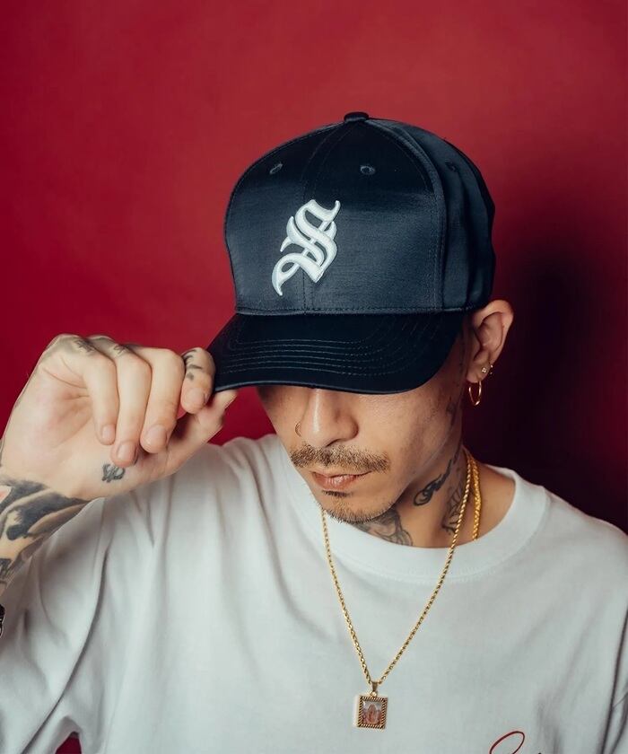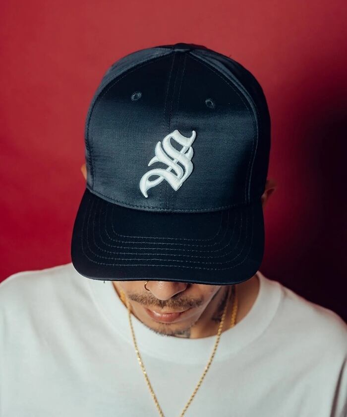 スカジャンやレザージャケットのライナーによく採用されているサテン生地を使用して作られたカーブバイザーキャップ。