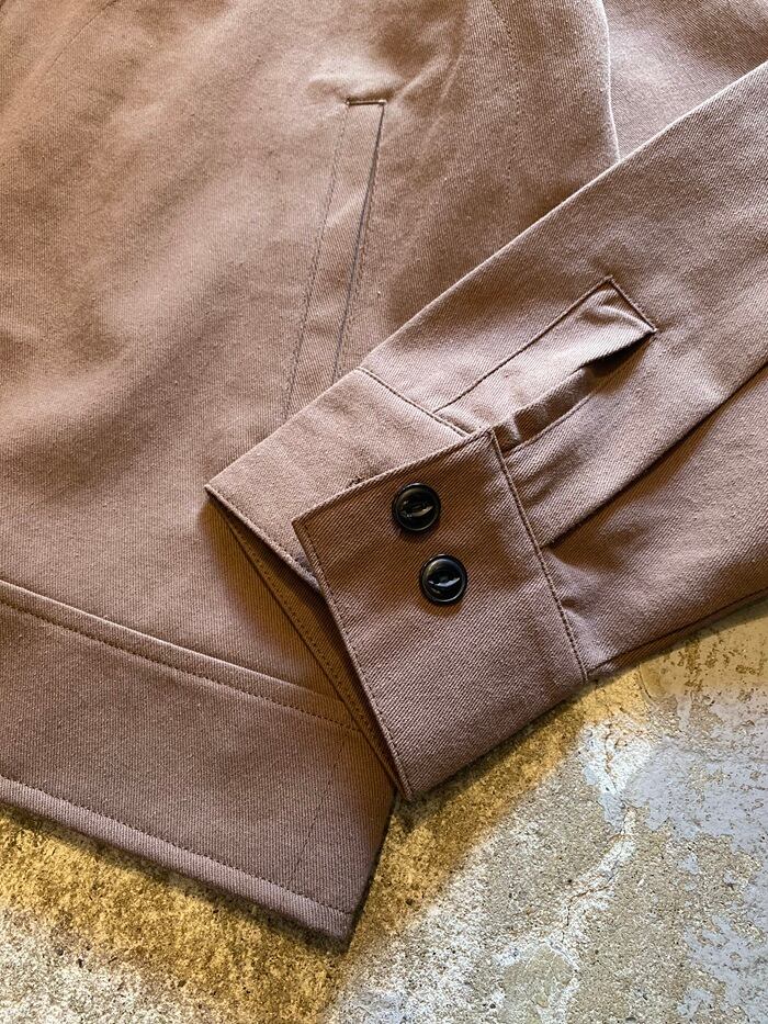 ハリのあるツイル生地を使用し作られた一着は、春のトップスとしてシャツやTシャツの上から軽く羽織易く春のスタイリングの主役になってくれるアイテムで御座います。