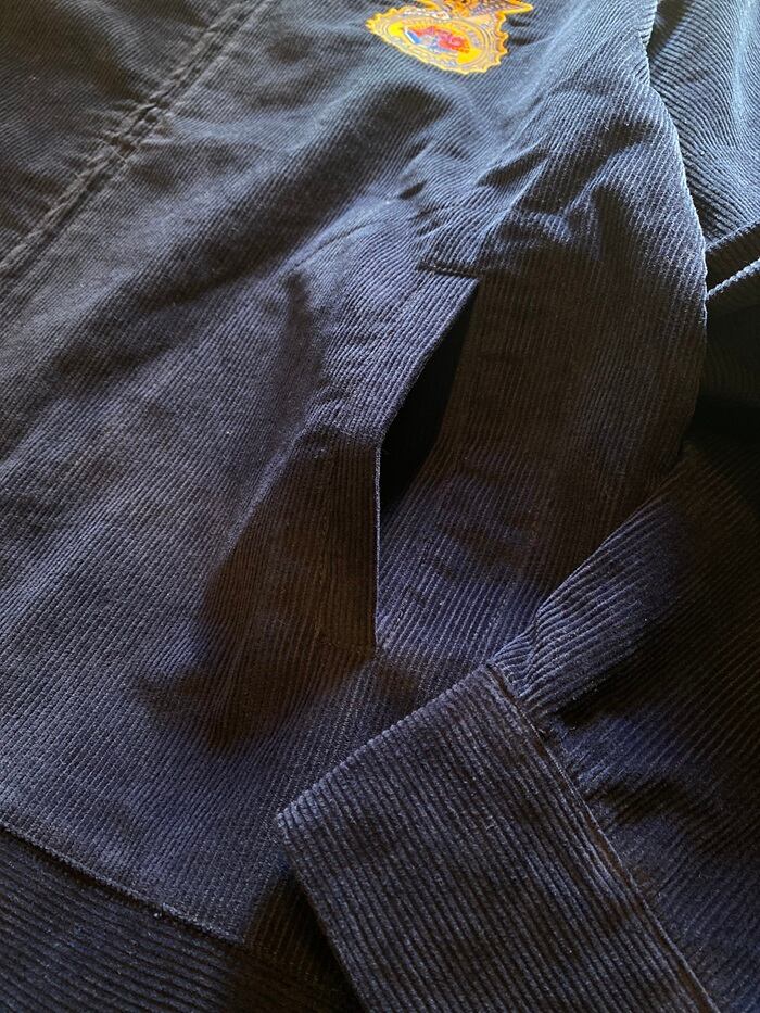 その規律あるアメリカらしいデザインの刺繍がジャケットの背面に施されており美しく、州ごとの配属が示されております。
