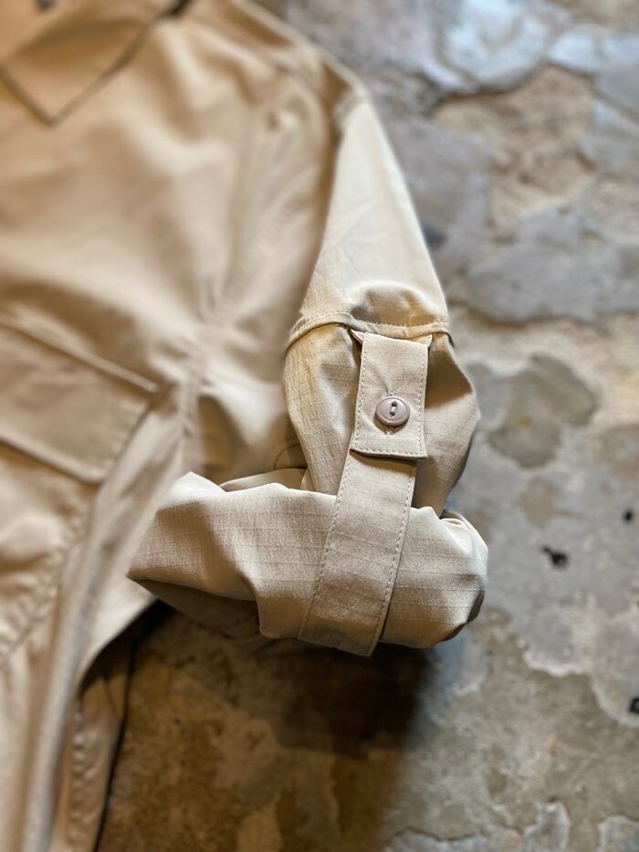 リップストップの独特なミリタリーな風合いと共に春の軽いライトジャケットのスタイリングをお楽しみ下さいませ。