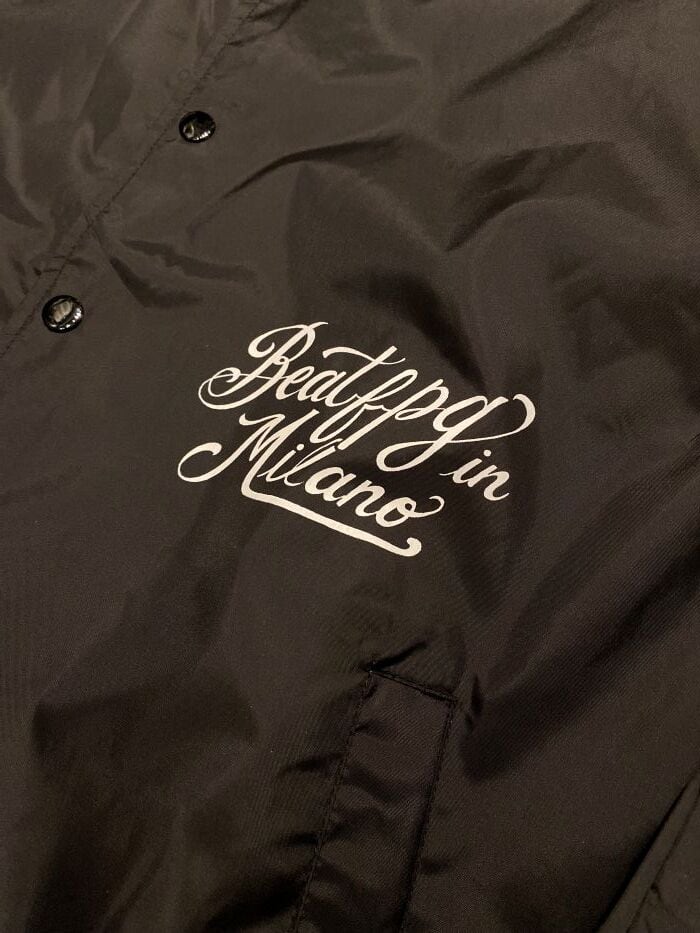 裏地トリコットを張り込んだベーシックなコーチジャケットに " BEAT.F.P.G " のオリジナルグラフィックを落とし込んだ極上の一枚。