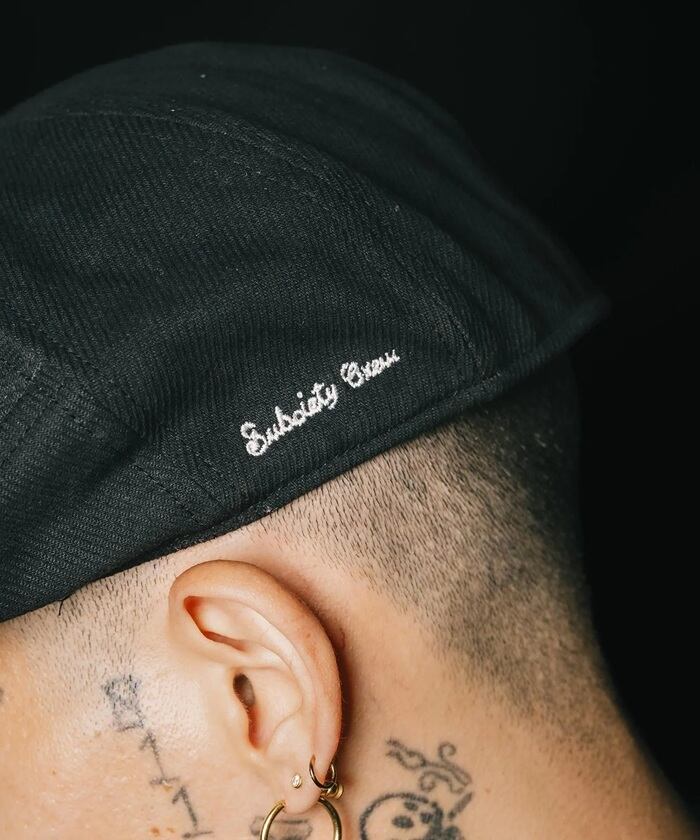 左側面へクラシカルなタイポグラフィーの刺繍をワンポイントにて施しています。