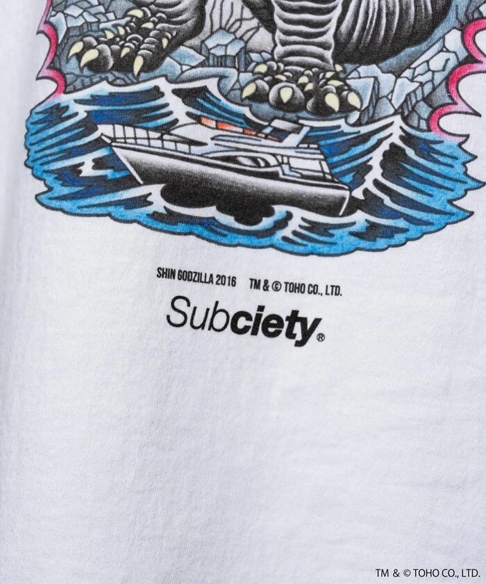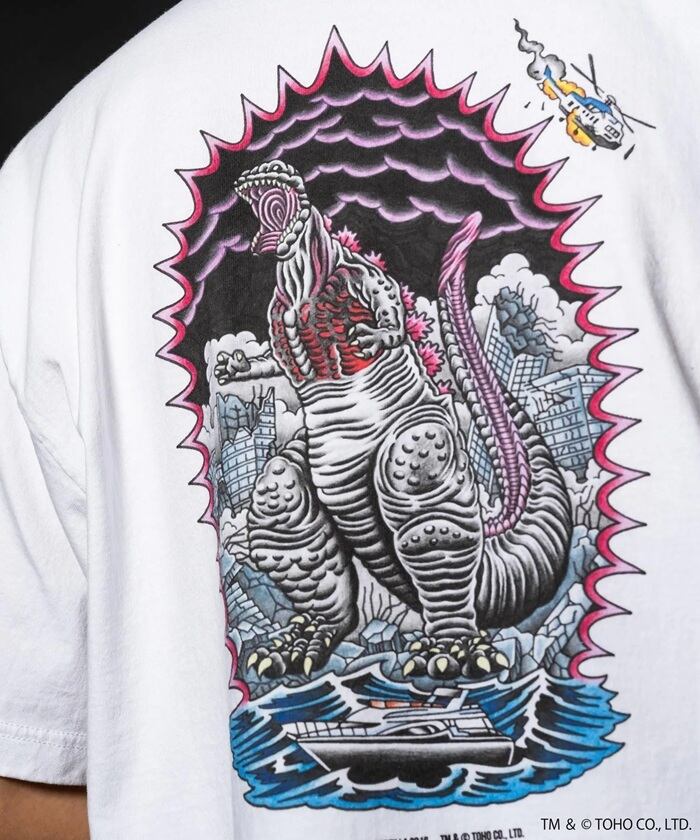 フロントにはオールドイングリッシュの「GODZILLA」ロゴを、バックには2016年に公開された『シン・ゴジラ』からインスピレーションを受けて描き下ろしたゴジラをプリントで施しました。