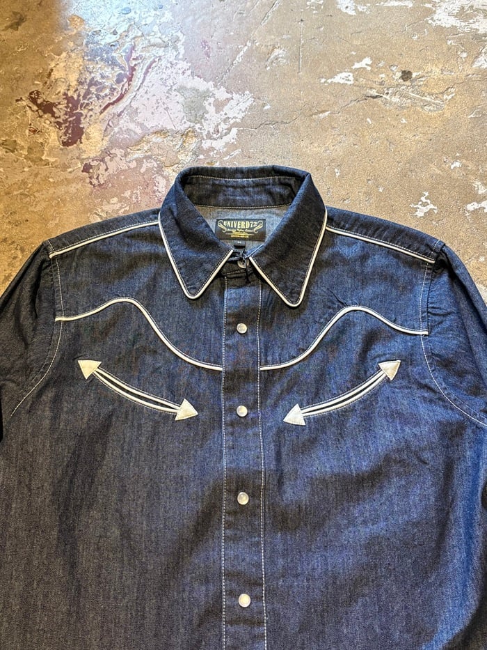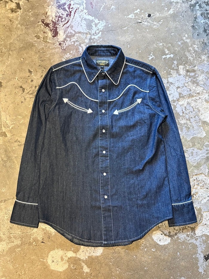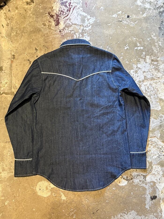 生地感が柔らかく適度な落ち感のあるライトオンスデニムを使用したウエスタンシャツ。