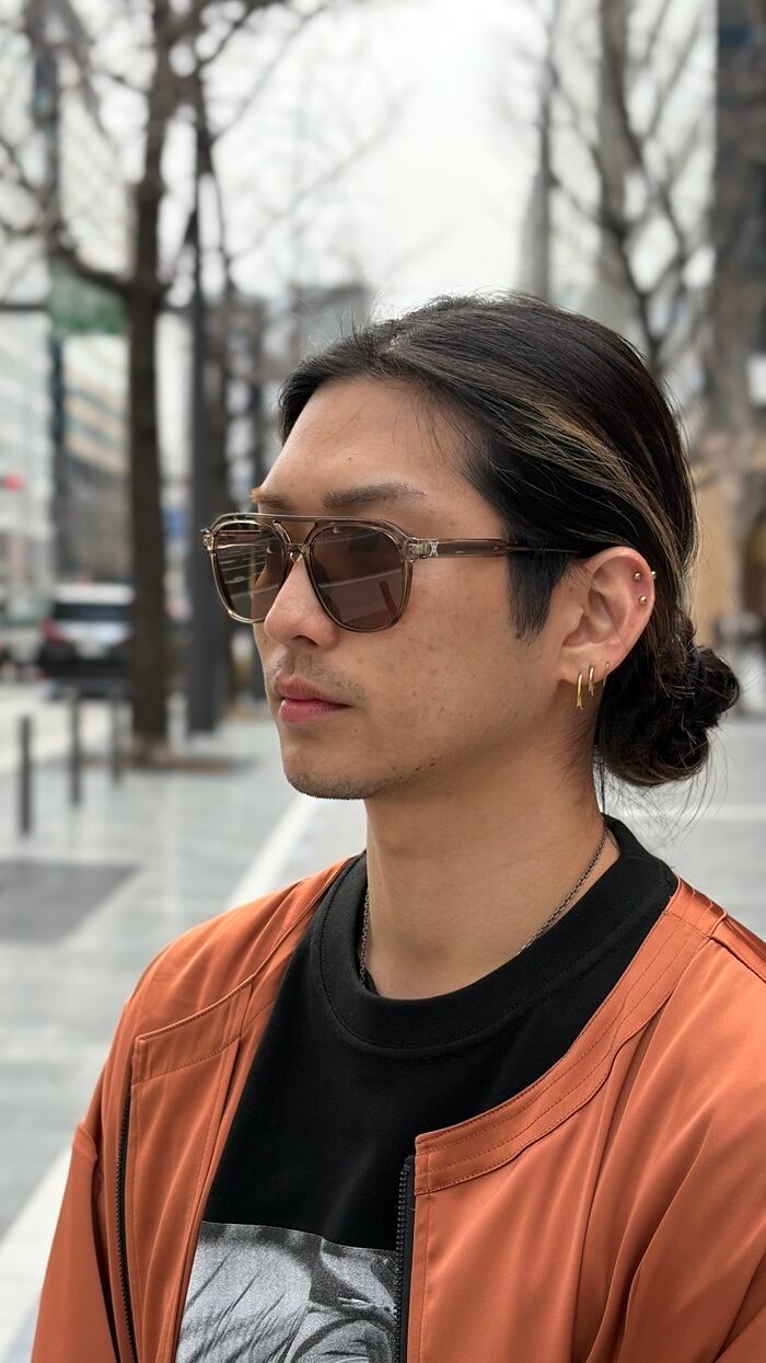 透明感あるフレームカラーは、パキッとしたサングラス特有の存在感を和らげられており、スタイリングへ取り入れ易いカラーとなっております。