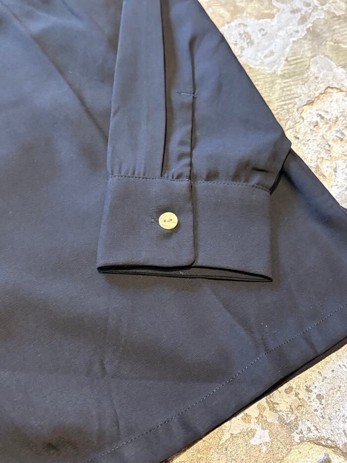 肌さわりの良いトロミある生地を敢て裏地使いすることで生地表面は、マッドなブラックの表