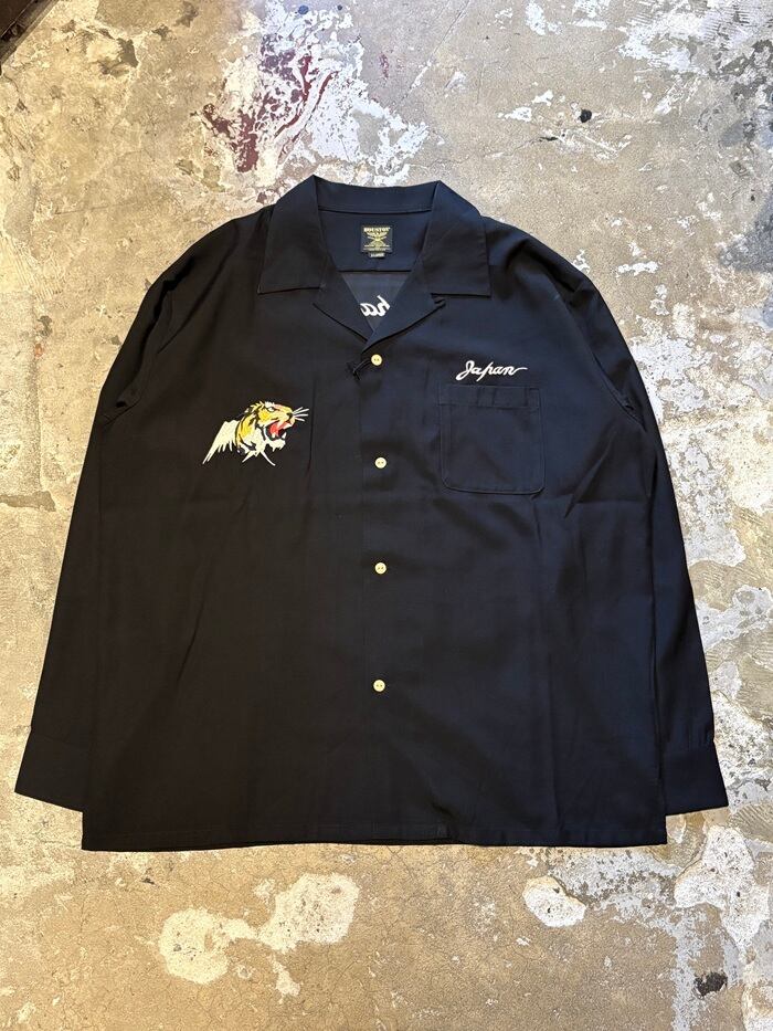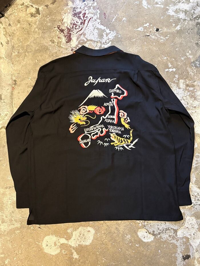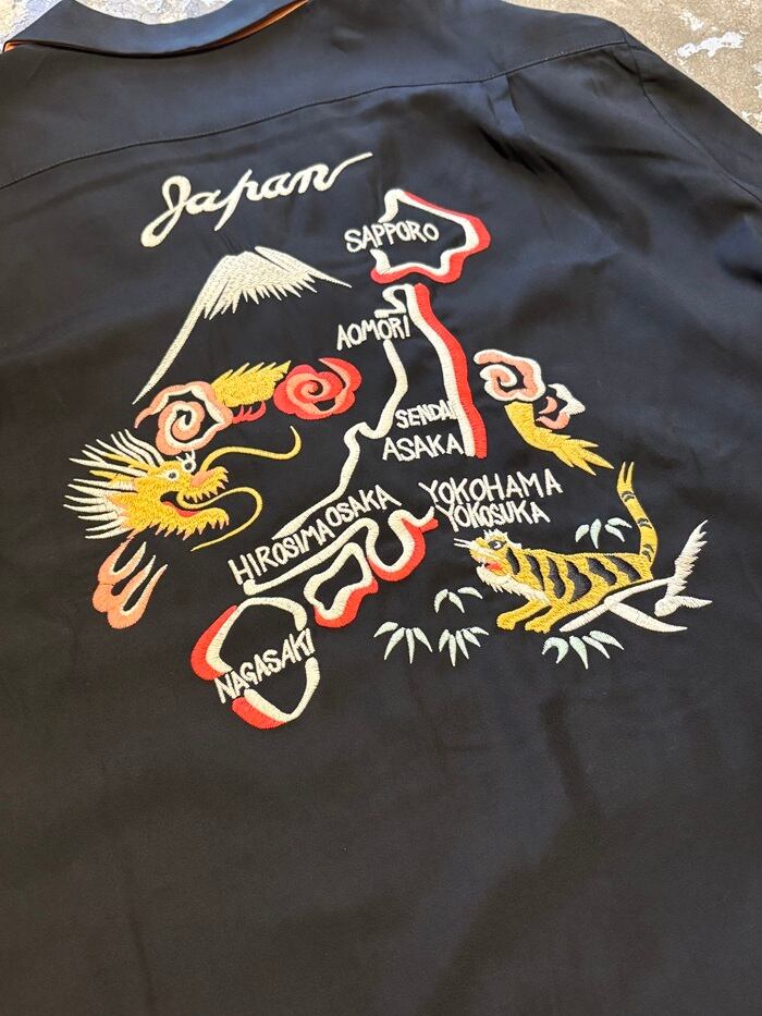 日本地図をスーベニアジャケットの様に再現された刺繍が贅沢にシャツ背面へ大きく針入れされております。