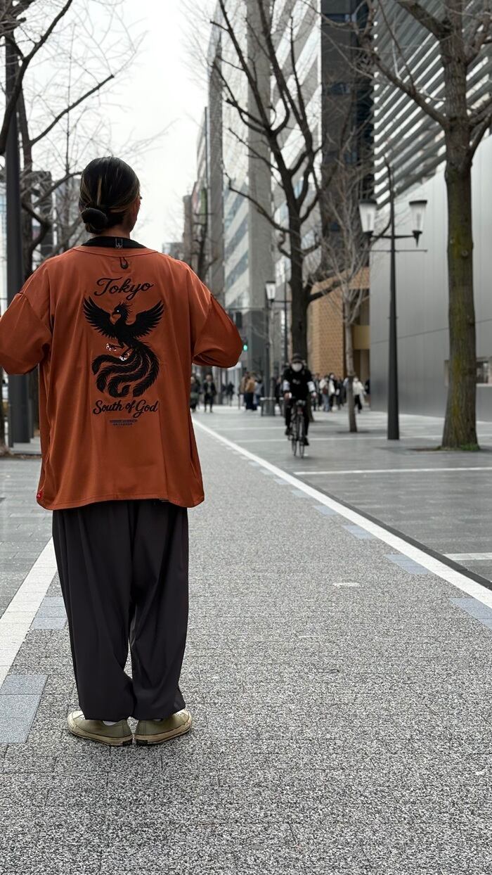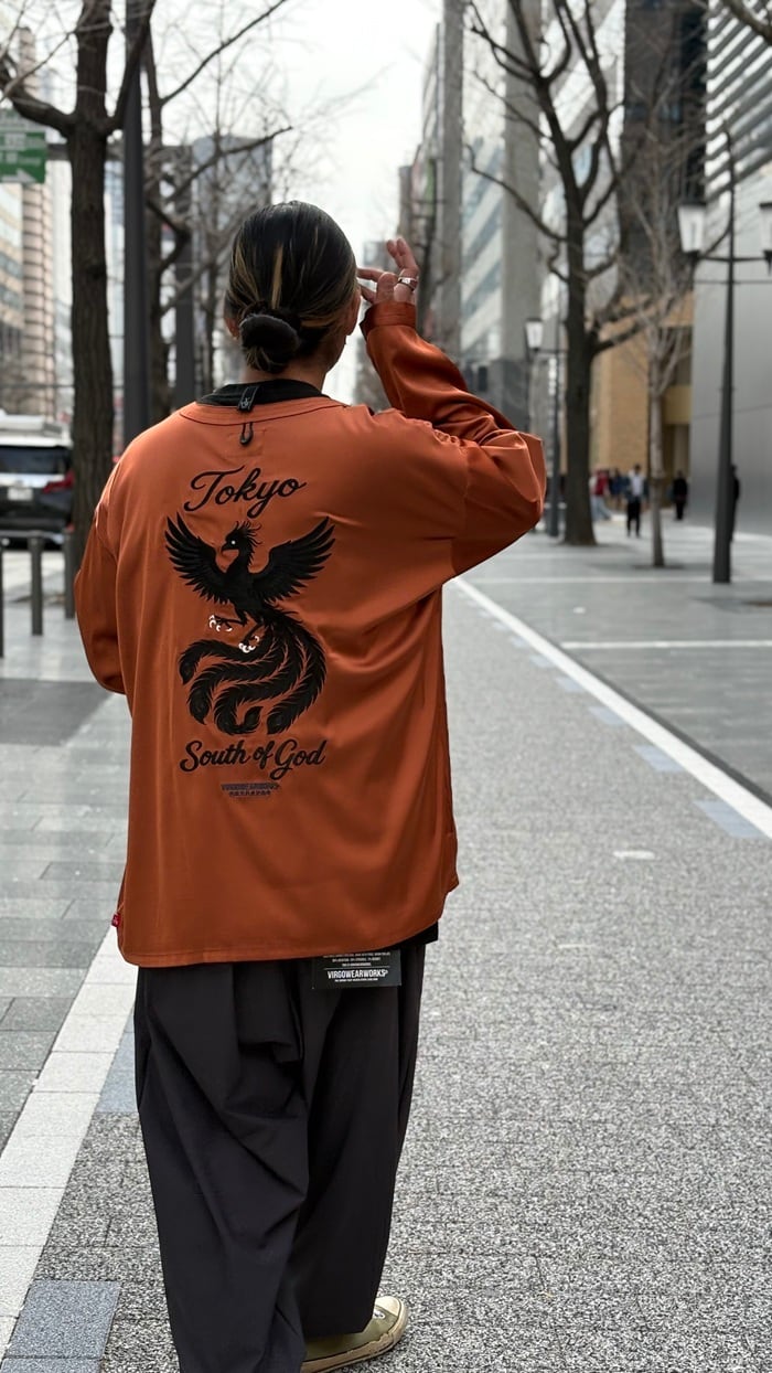 バックシルエットへは、大きく黒い刺繍糸を使用してフェニックスのグラフィックを
