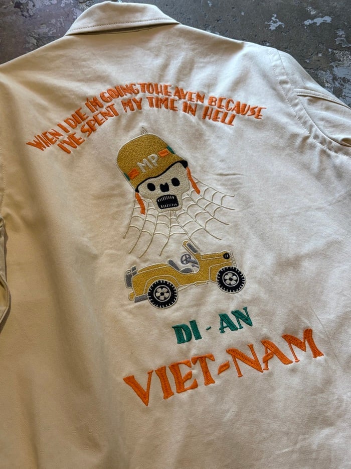 バックシルエットへは、SKULLとトラックの柄を刺繍。