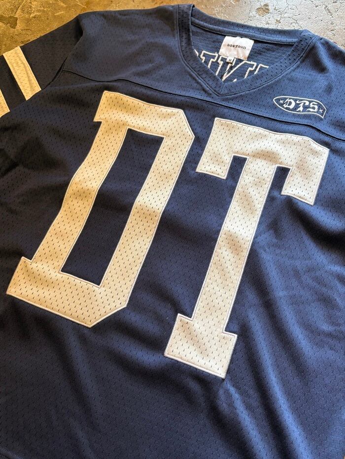 フロントには、DOG TOWNの " DT " の文字とオールドデッキデザインのDTSロゴを刺繍にて落とし込まれております。