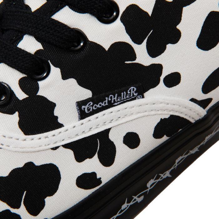 ベースは肉厚なキャンバスのカウ柄と、オリジナルで製作されたライトニング柄を使用。