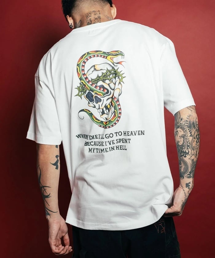 左胸、バックにはベトジャンに見られる「蛇とスカル」をプリントで施しました。