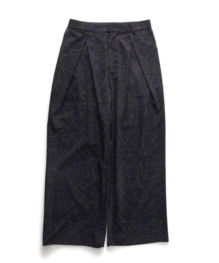 フロントは袴を彷彿とさせるクロスタック仕様で、広めのワタリから裾にかけては
