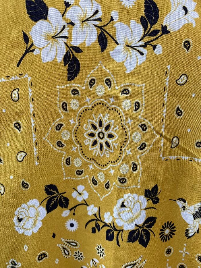伝統的なBANDANNA柄をオリジナルなフラワーアレンジパターンで仕上げられたとても上品な仕上がりで大人の遊び心をくすぐる一着です。