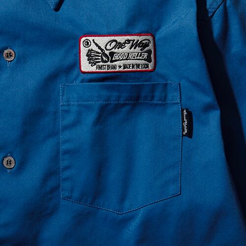 フロント左胸にはONE WAYとワードの入ったグッドサインワッペンをオン。