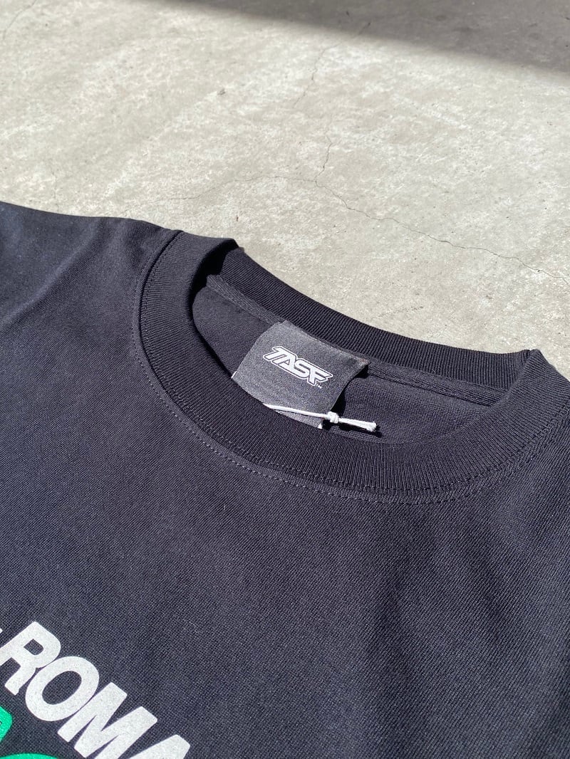 TASFより" THE ROMAN "のメッセージと組み合わせオリジナルLOGOをTシャツフロントへプリントされたシンプルでハイセンスな一枚。