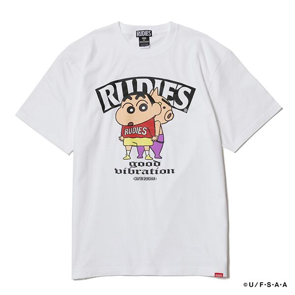 クレヨンしんちゃんのオリジナルグラフィックに、RUDIE'Sテイストを加えたストリート感あふれる仕上がりとなっています。
