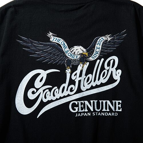 白頭鷲とブランドロゴを組み合わせ作製したアメリカンテイストなグラフィックをTシャツのバックシルェットへ丁寧なインクジェットプリントにて表現されております。