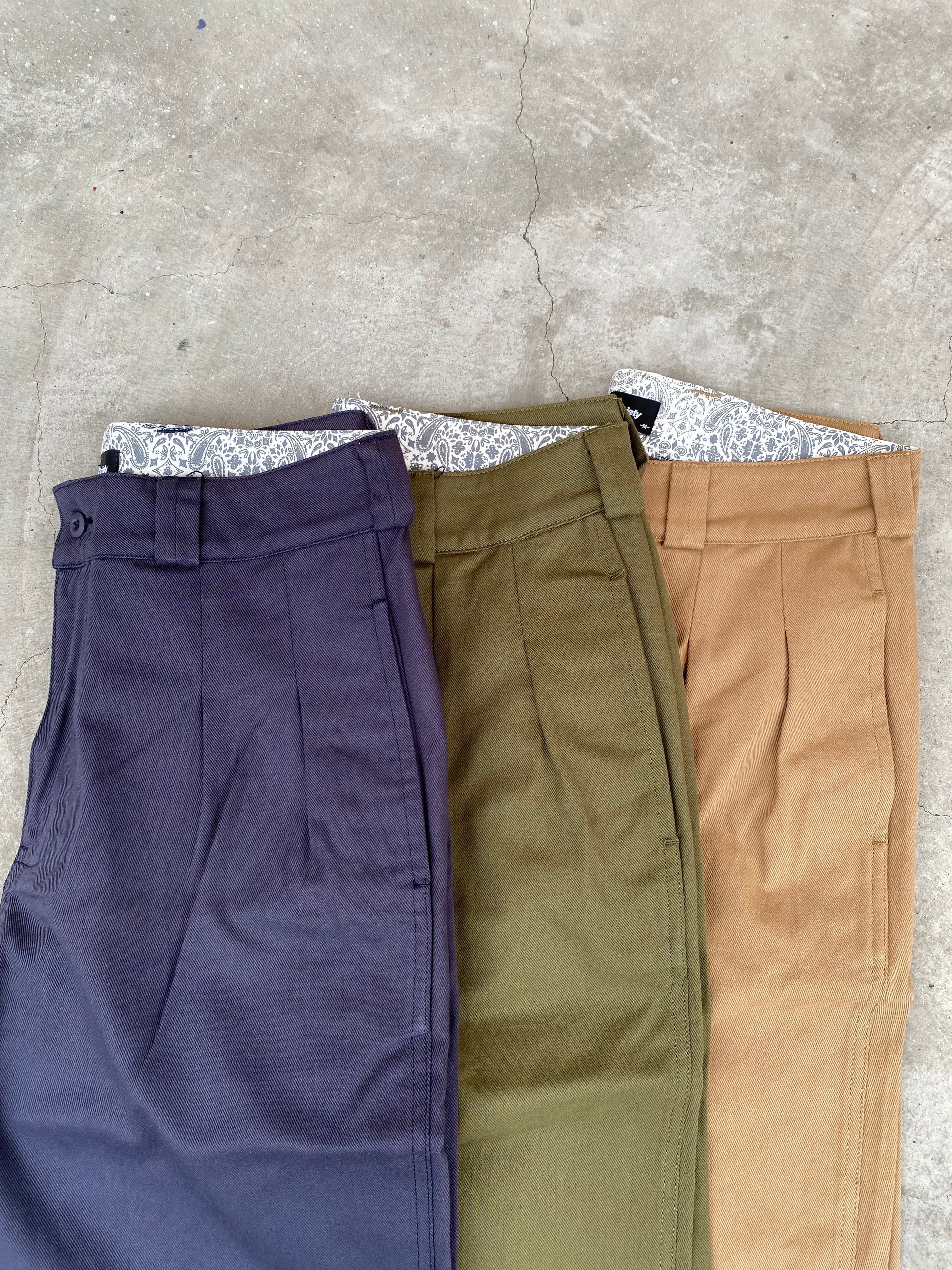 定番のワークトラウザーにもブランドらしいアクセントが、魅力的で御座います。